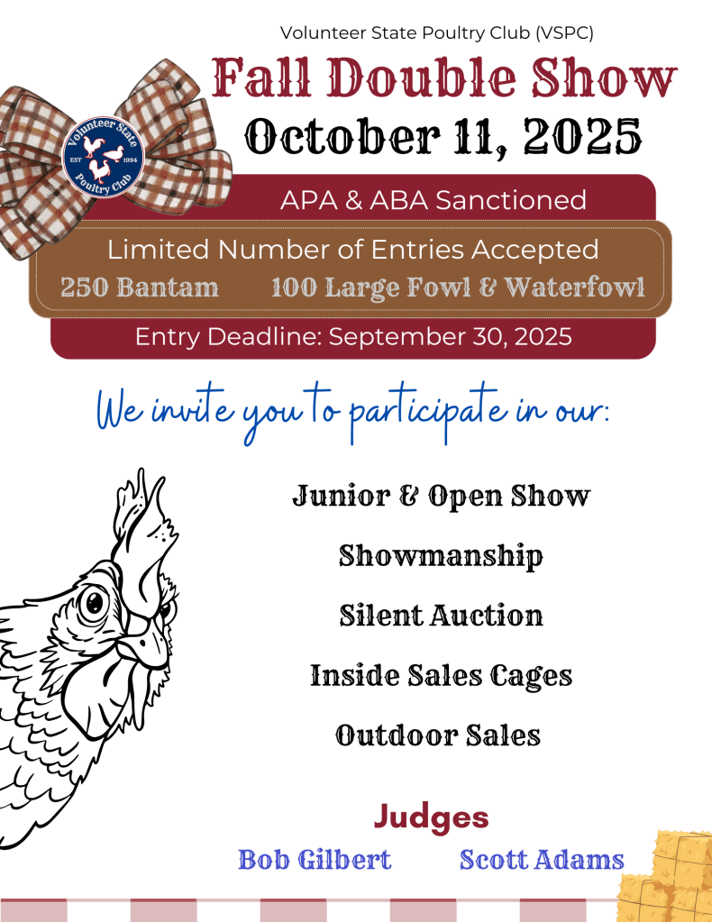 Printable Entry Form: https://vspoultryclub.com/wp-content/uploads/2025/08/vpsc-fall-entry-form-fillable.pdf